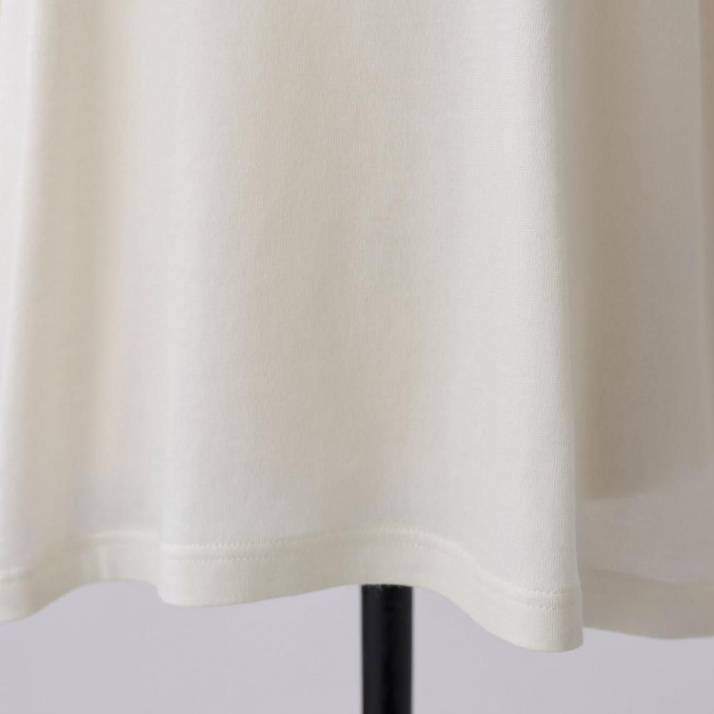 やわらかく滑らかな肌ざわりで、素肌に触れても心地よく、一枚で品よく着こなせる一着です。