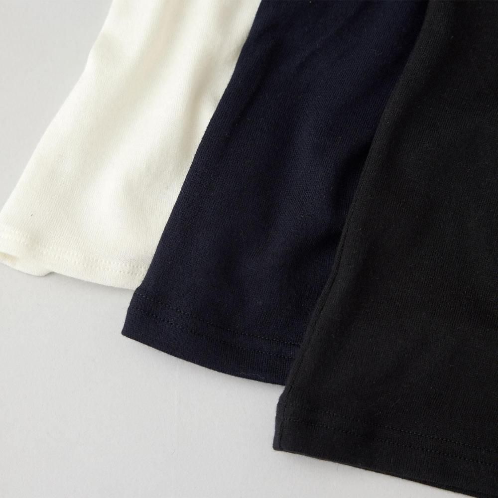 シロは、一枚あると何かと使える万能カラー。クリーンな印象で、インナーとしても重ね着しやすく、季節を問わず活躍します。