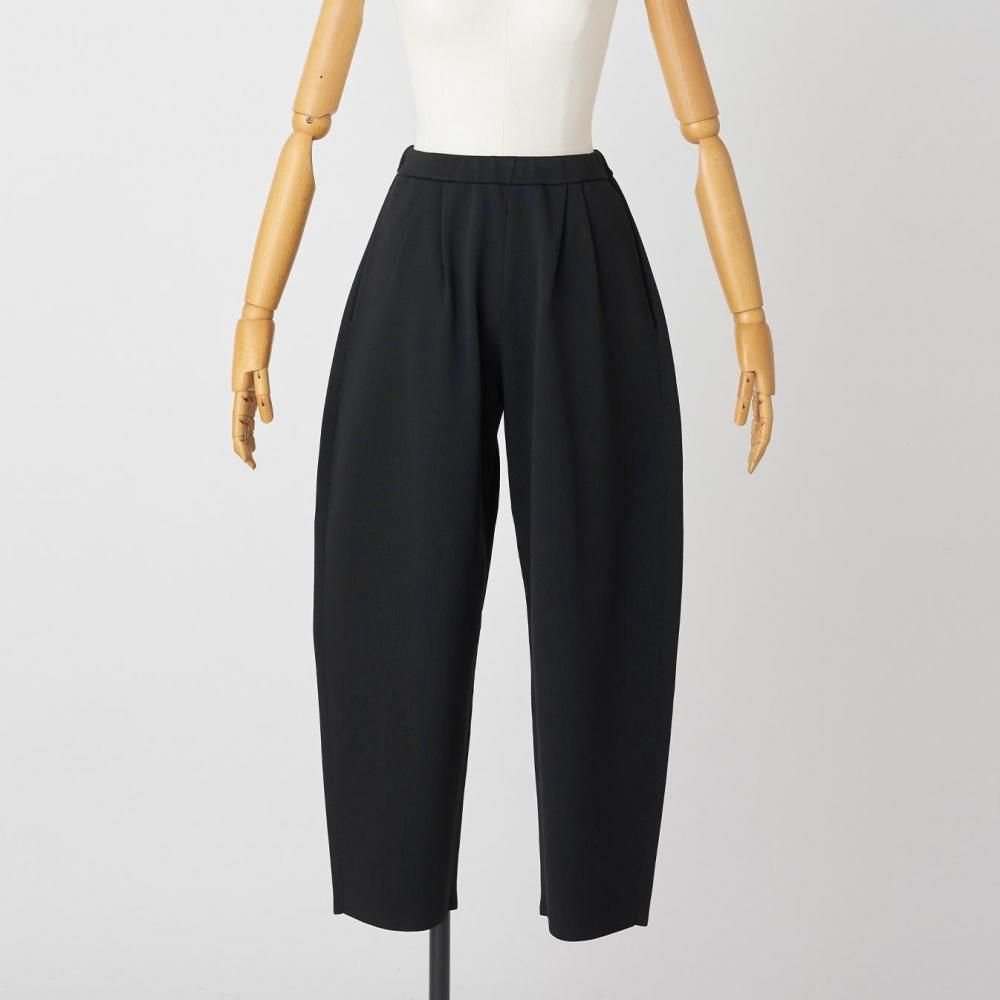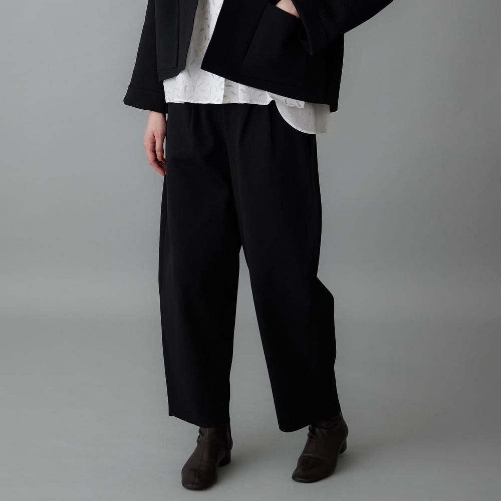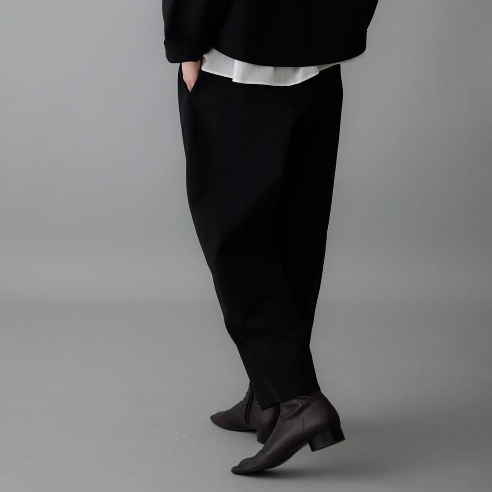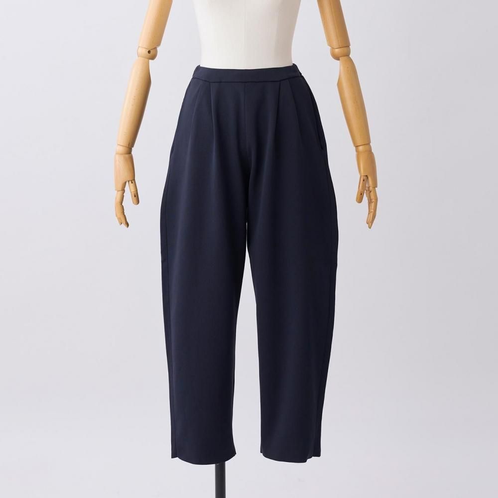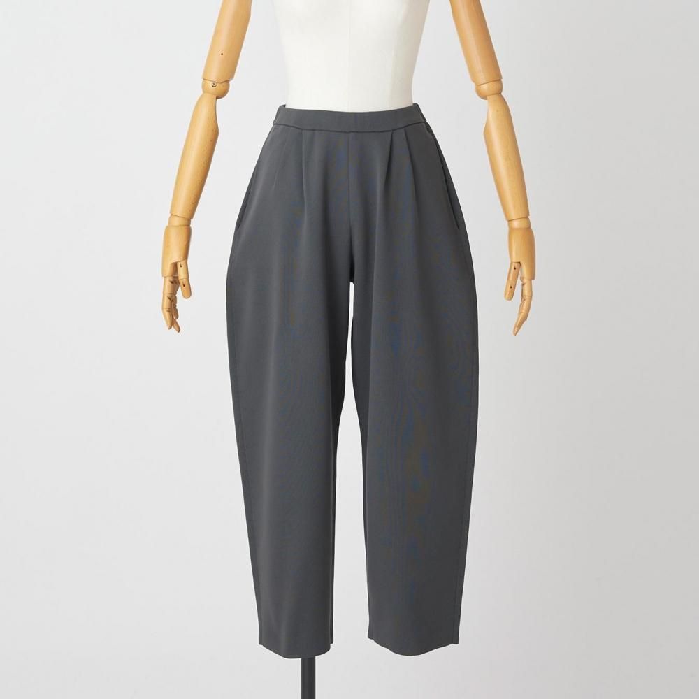 ウエストの両サイドに入れたタックが立体感を生み、裾に向かってゆるやかに細くなるラインが、すっきりとしたシルエットをつくります。