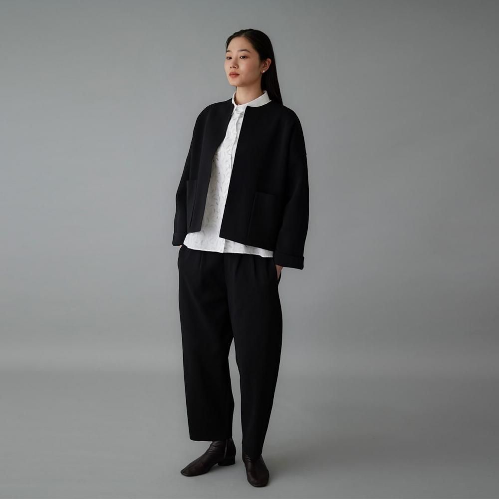 デイリーにもきちんとしたシーンにも活躍し、同素材のジャケットとのセットアップスタイルもおすすめです。