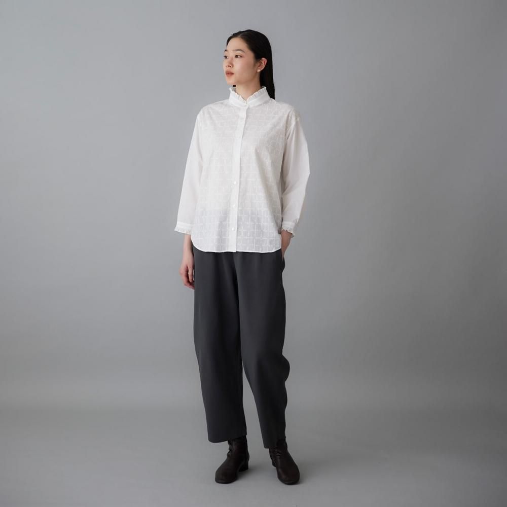 軽い穿き心地で身体のラインを拾いにくく、リラックス感がありながらもきれいな印象に。