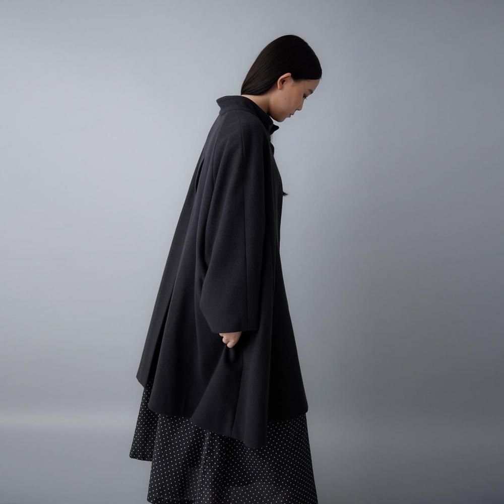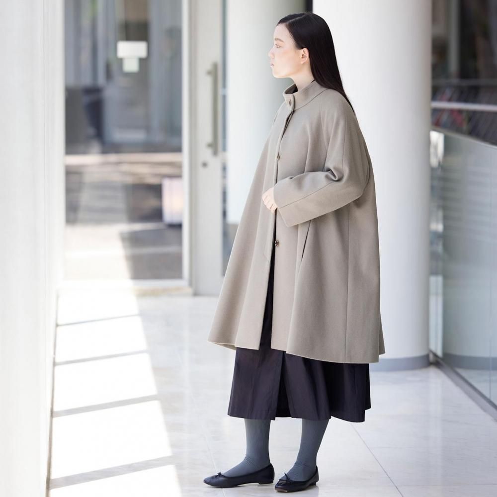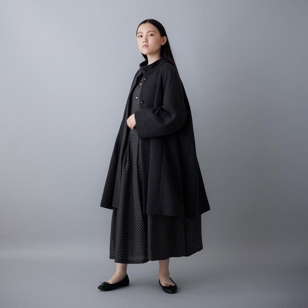 ゆとりのあるAラインシルエットが美しく広がる、上品なコートです。