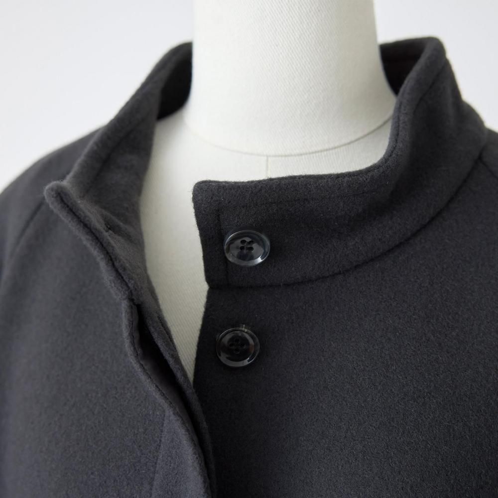 シンプルなデザインながら、スタンドカラーとボタンの配置がさりげないアクセントに。