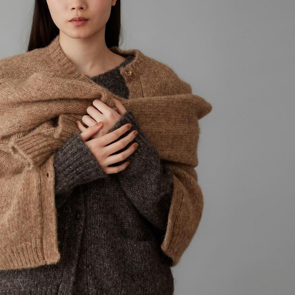 希少な超長綿ピマコットンのシルキーな質感に、ファインアルパカのしっとりとした温もりを重ねた、柔らかくふんわりとした風合いが魅力の特別なニットジャケット。