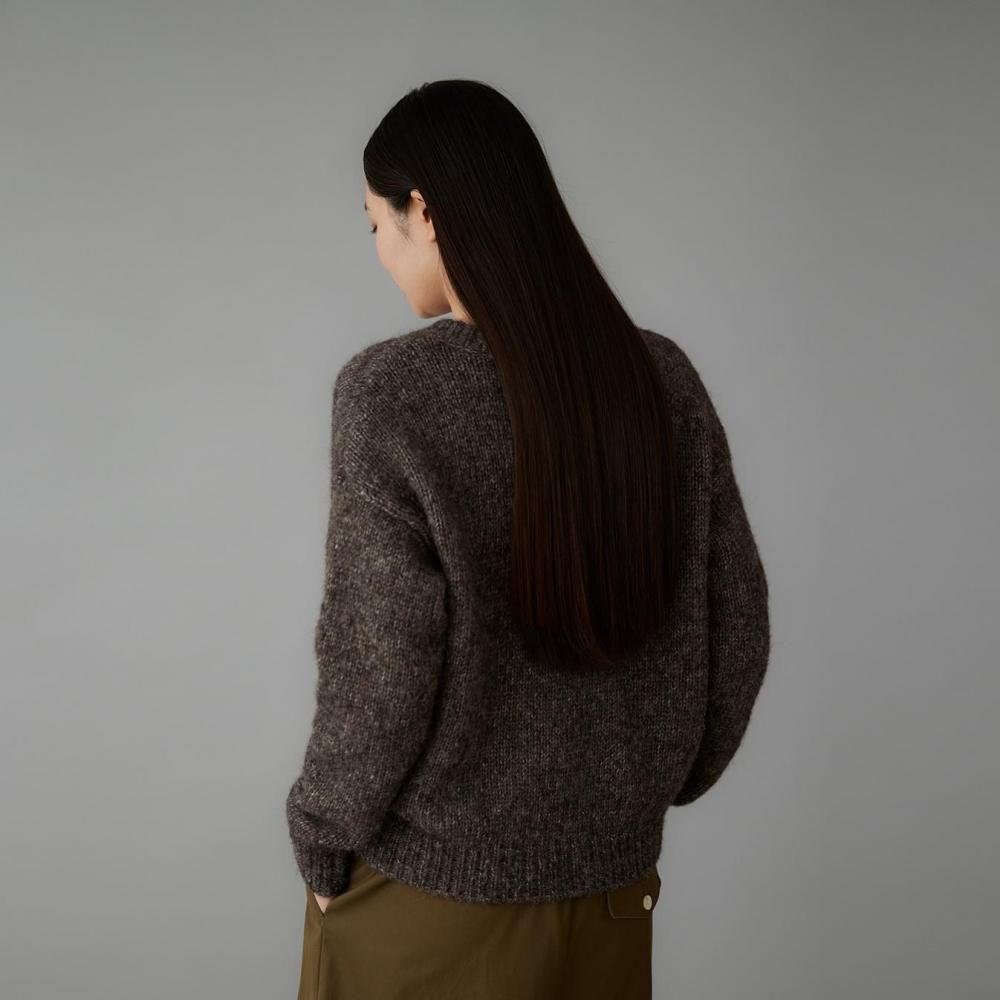 空気をたっぷり含む編地が身体をやさしく包み込み、ほどよいボリュームがありながらも驚くほど軽やかな着心地を実現。