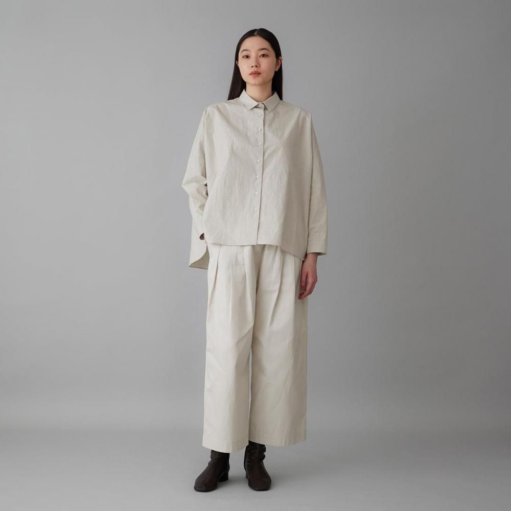クラシックな衿元とシンプルなデザインが、日常の装いにそっと寄り添いながら、洗練されたバランスを引き出してくれるシャツです。