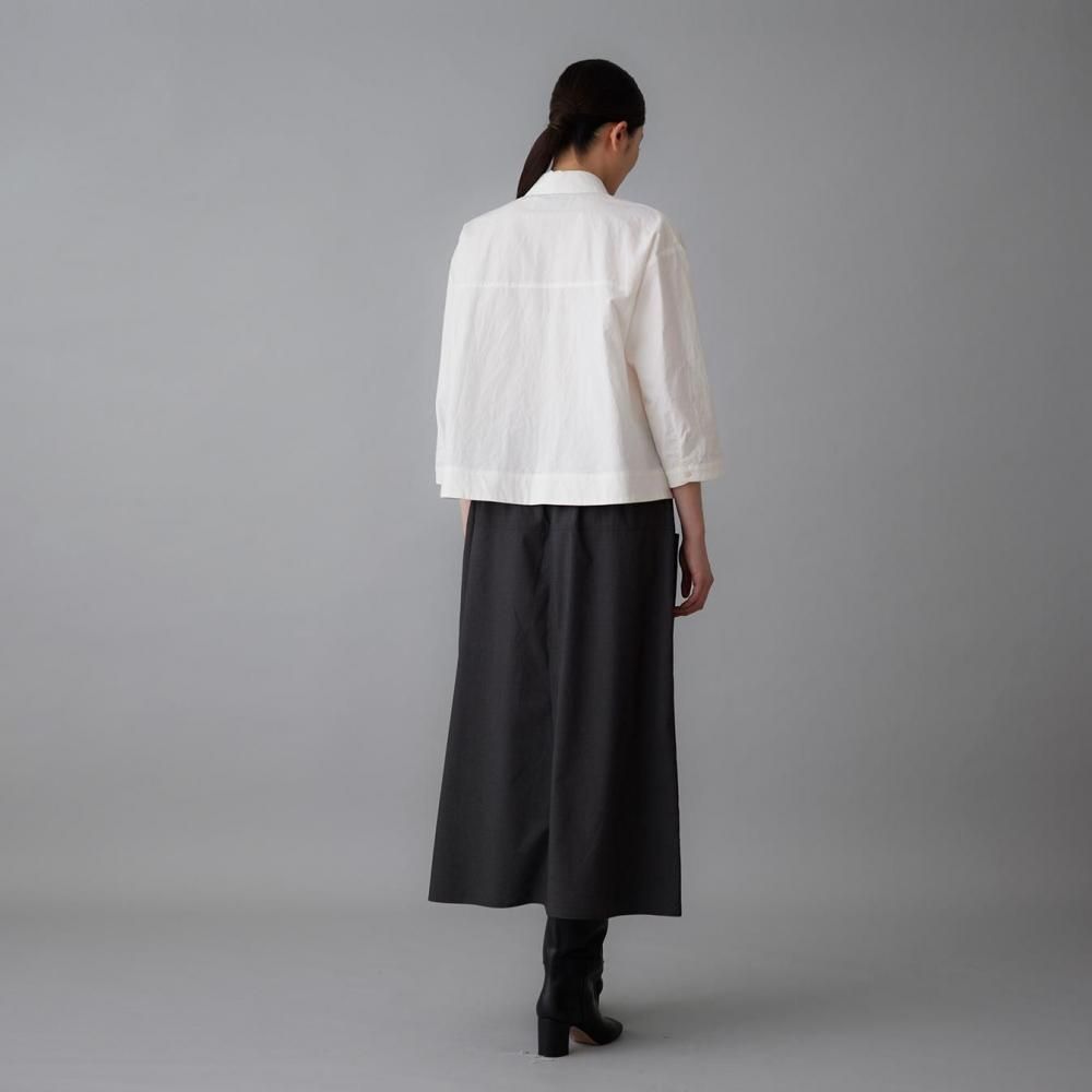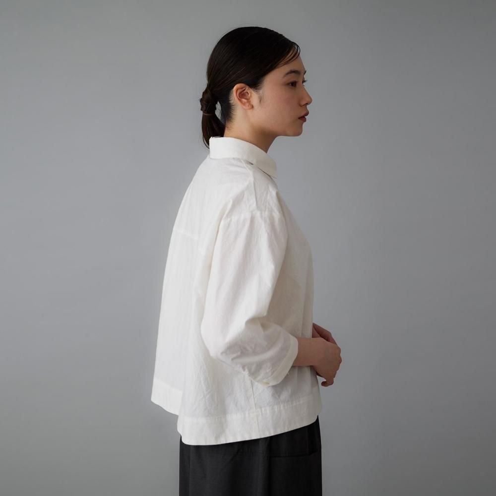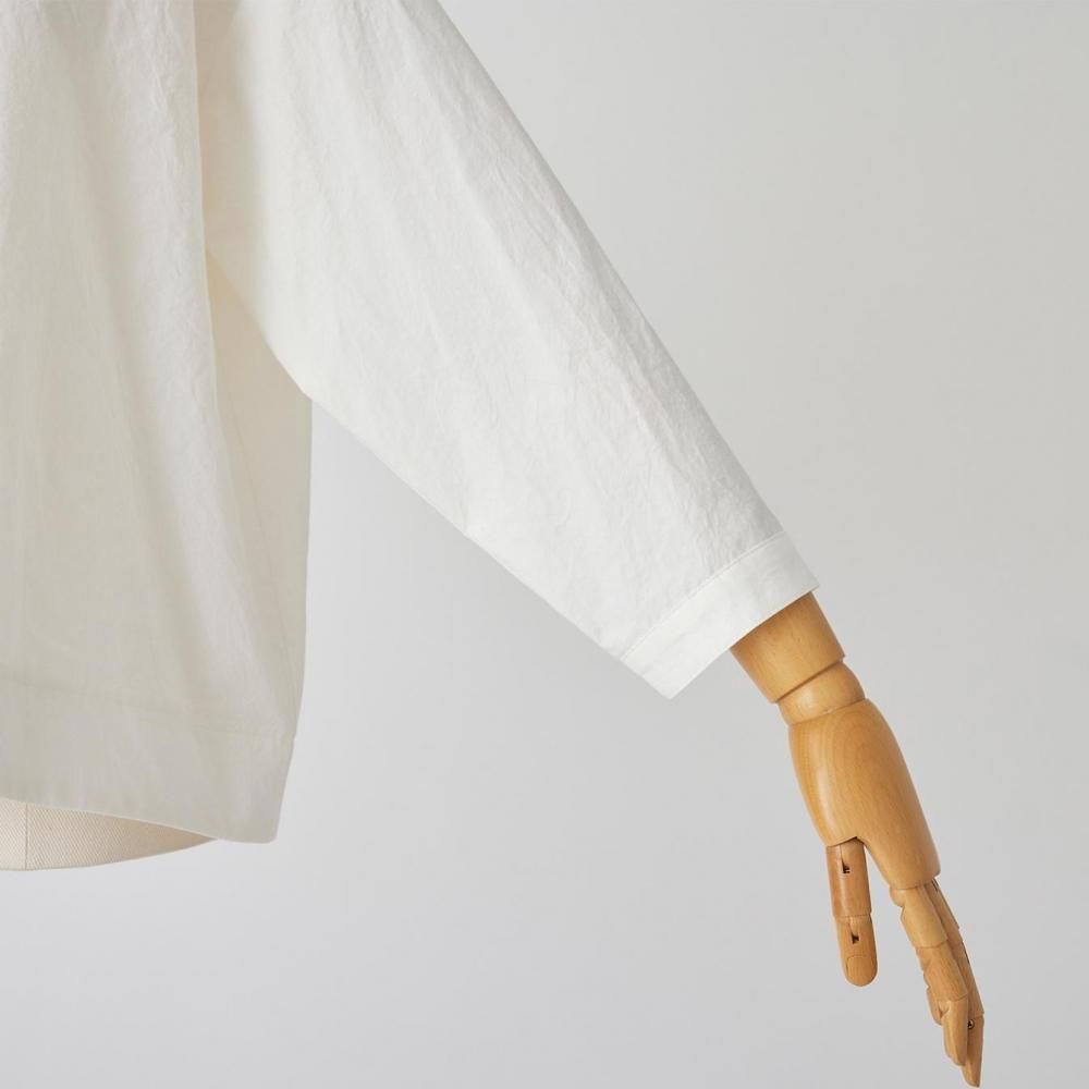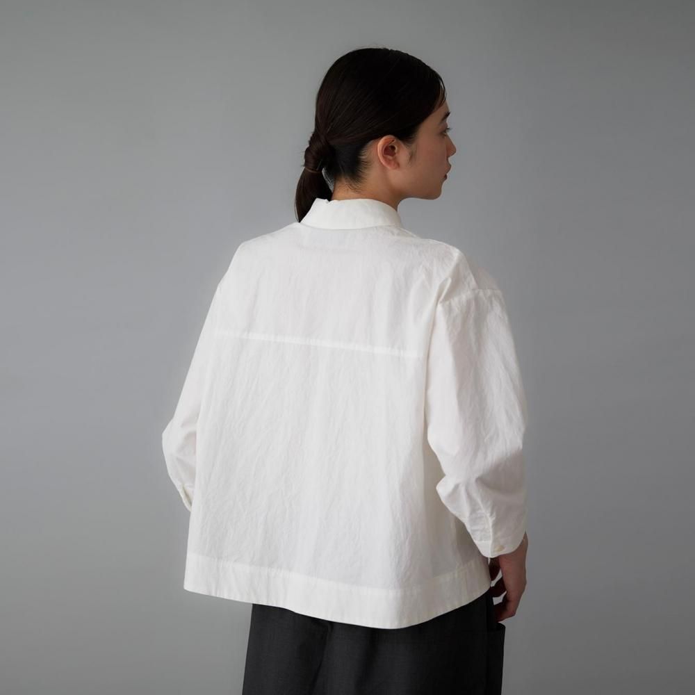 ゆったりとした身幅にやや短めの着丈を合わせたボックスシルエットは、どの角度から見ても軽やかで、美しいバランスに。
