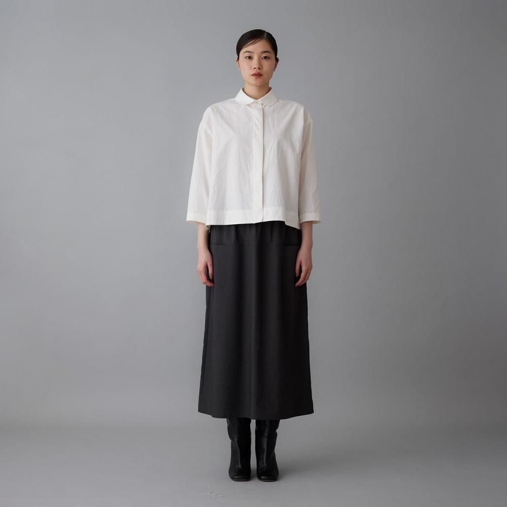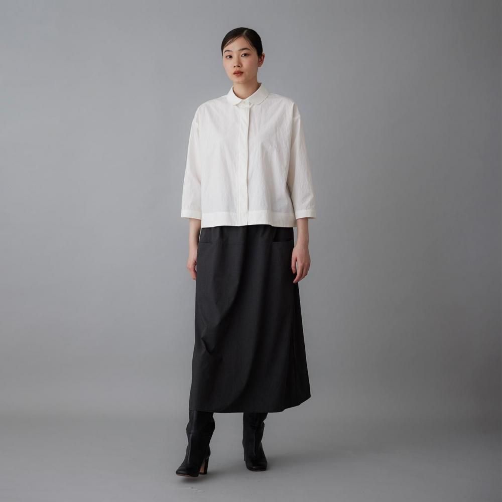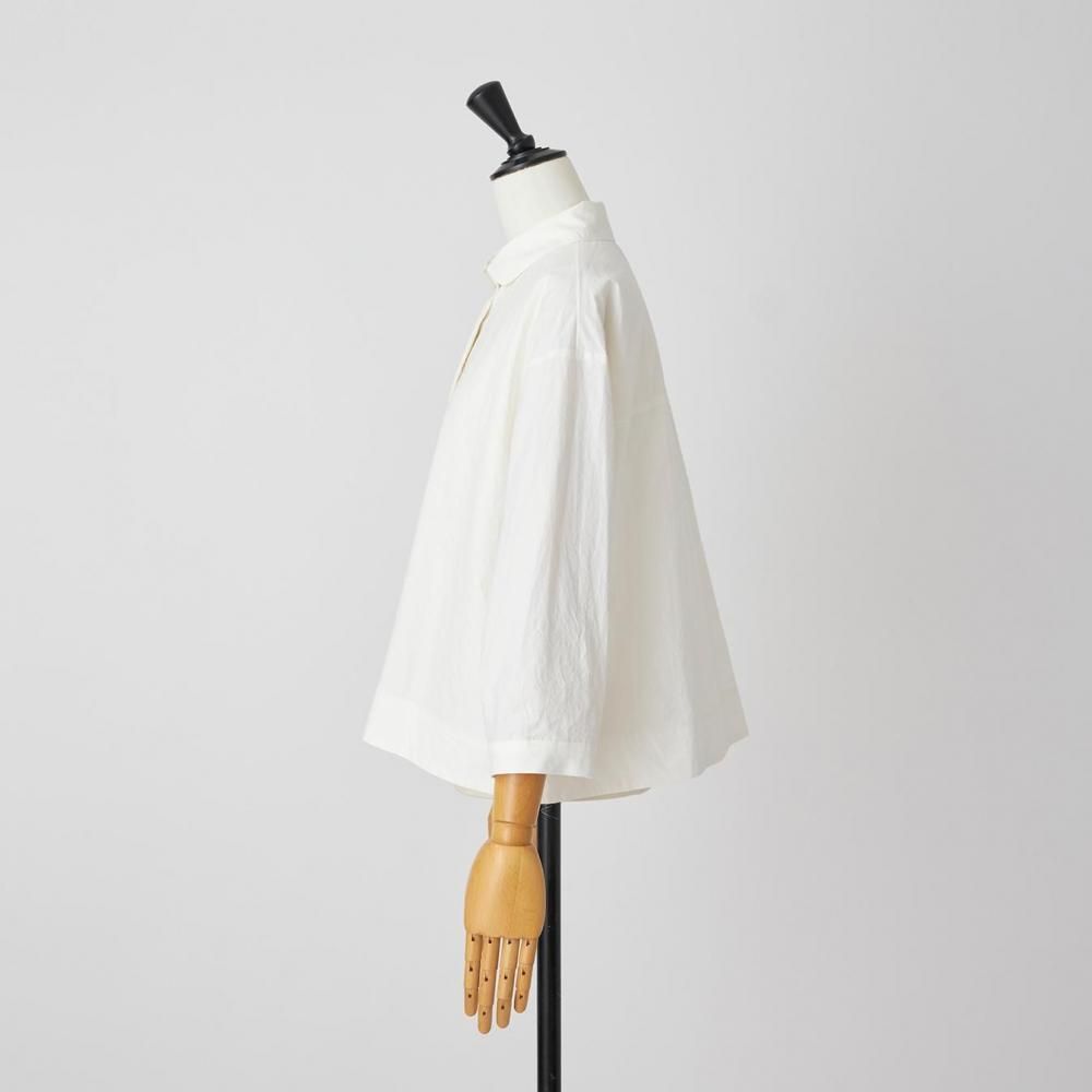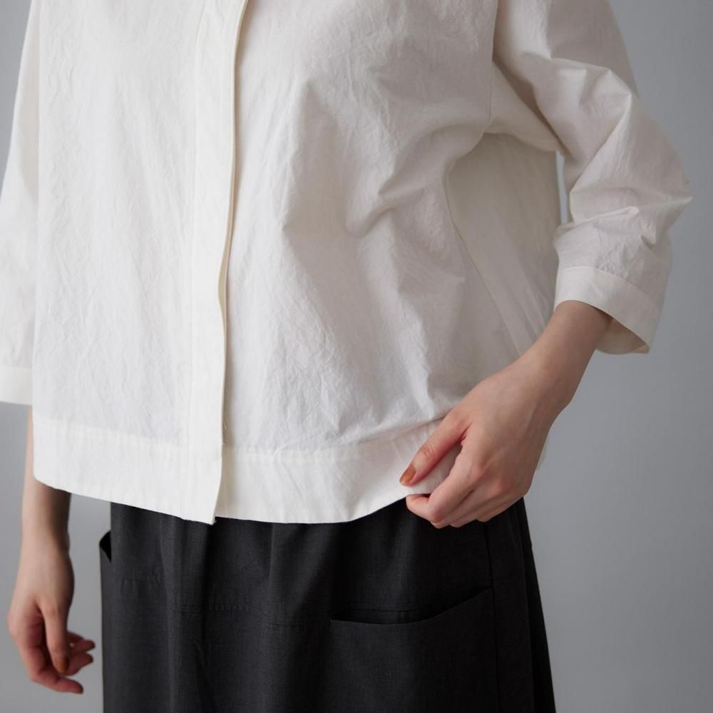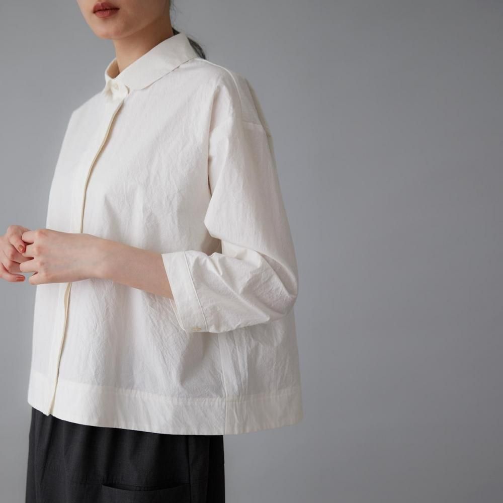 洗いざらしたような自然な風合いと、軽やかなハリ感が魅力の丸襟コットンシャツ。