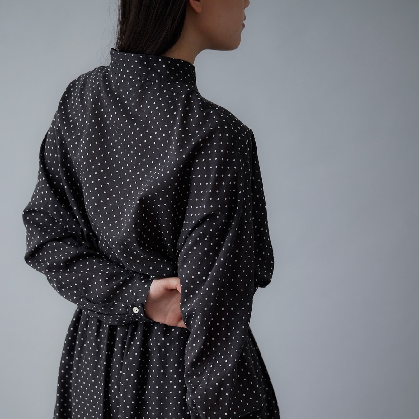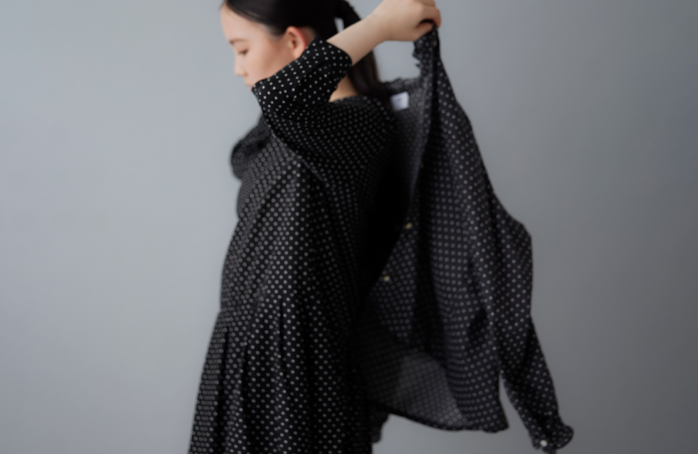 その素材に、クラシックなスクエアドットをのせたutilitéのオリジナルプリント。