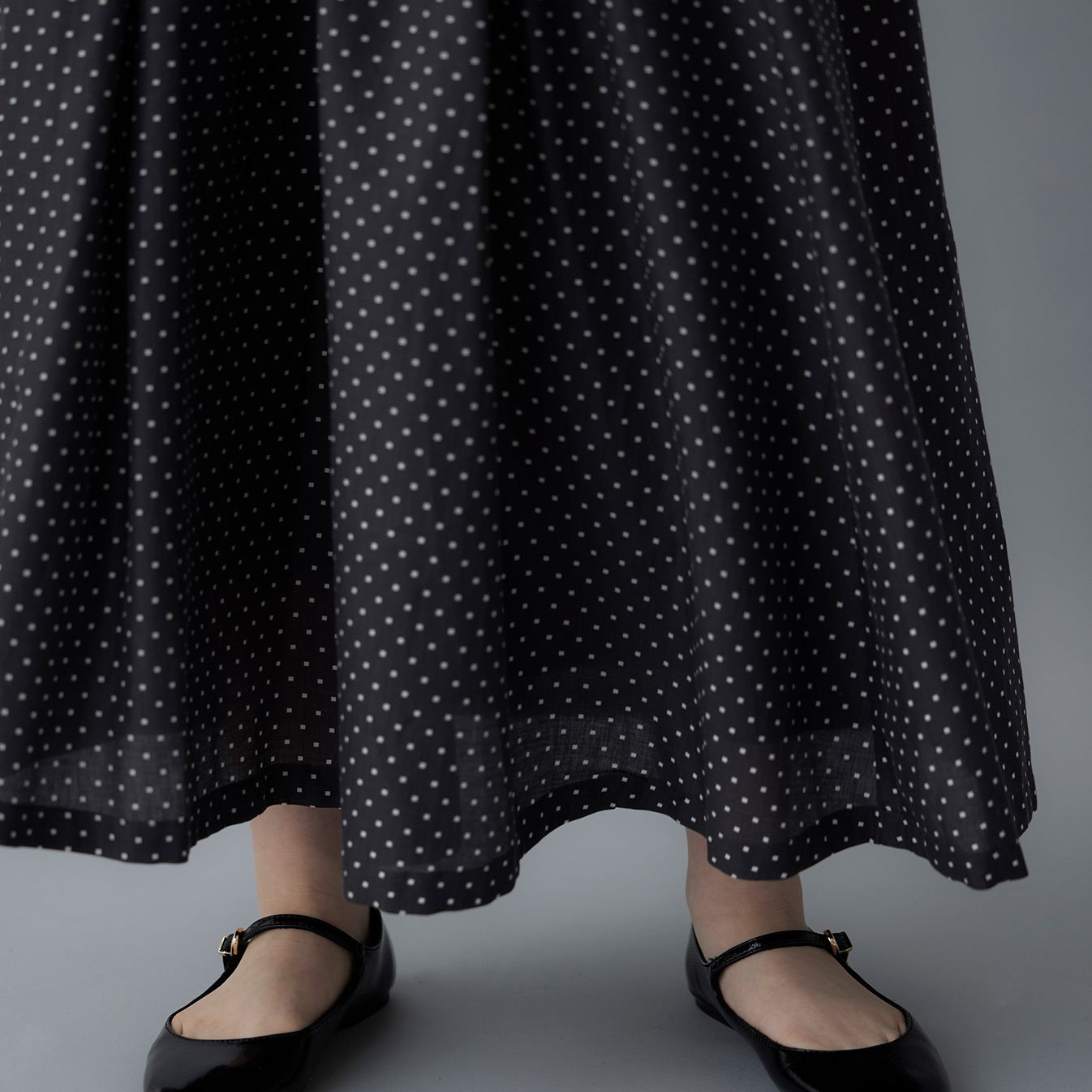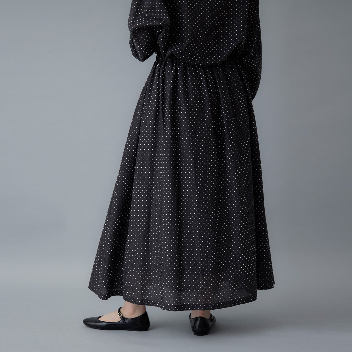 ウエストまわりに入れたタックが自然な立体感を生み、ほどよくボリュームのある上品なシルエットを描くスカート。