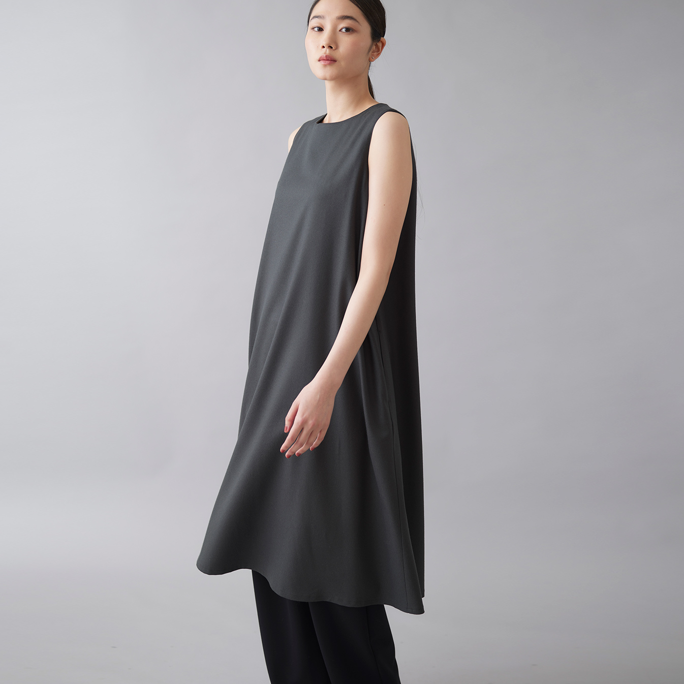 流れるようなAラインシルエットが特徴で、体のラインを拾わず、