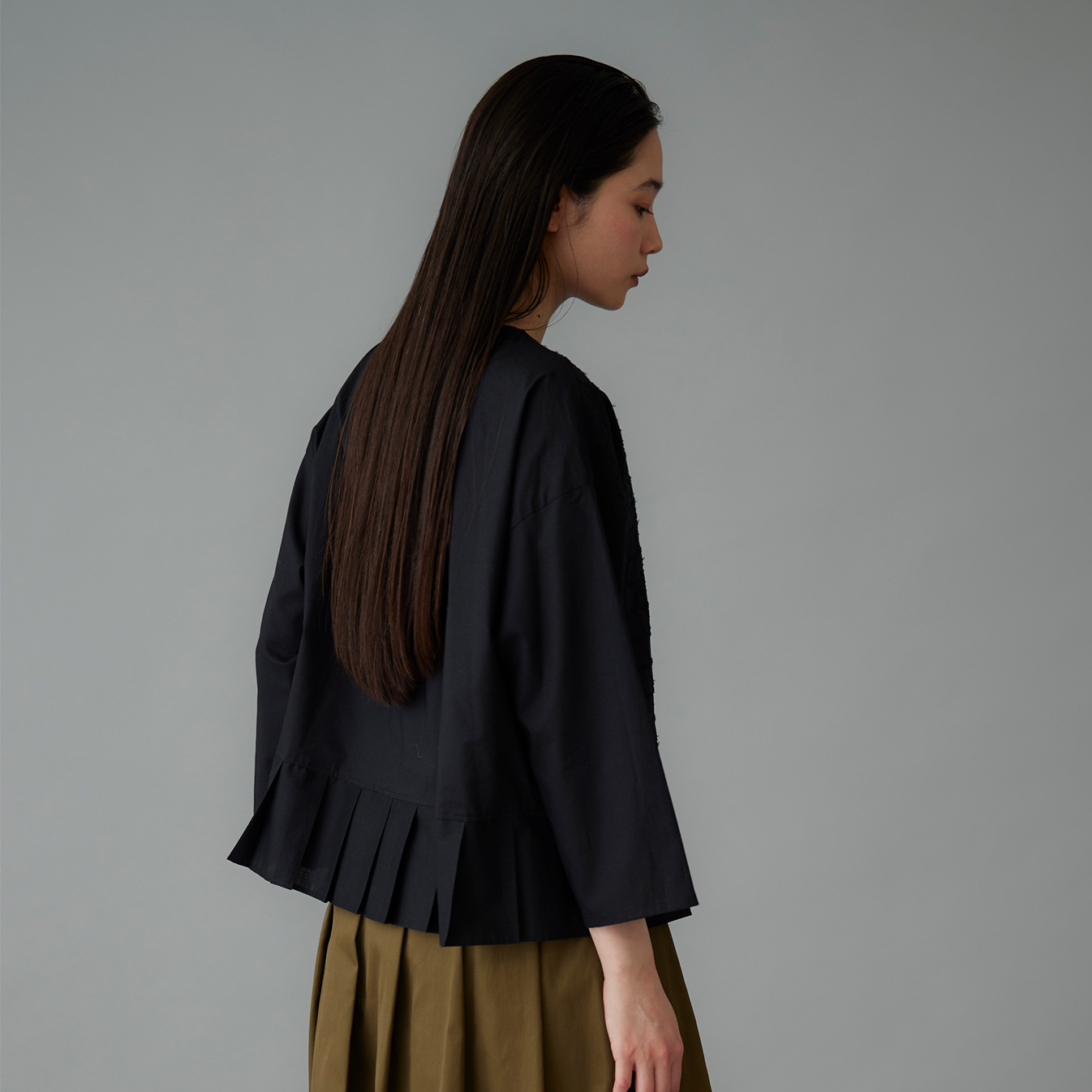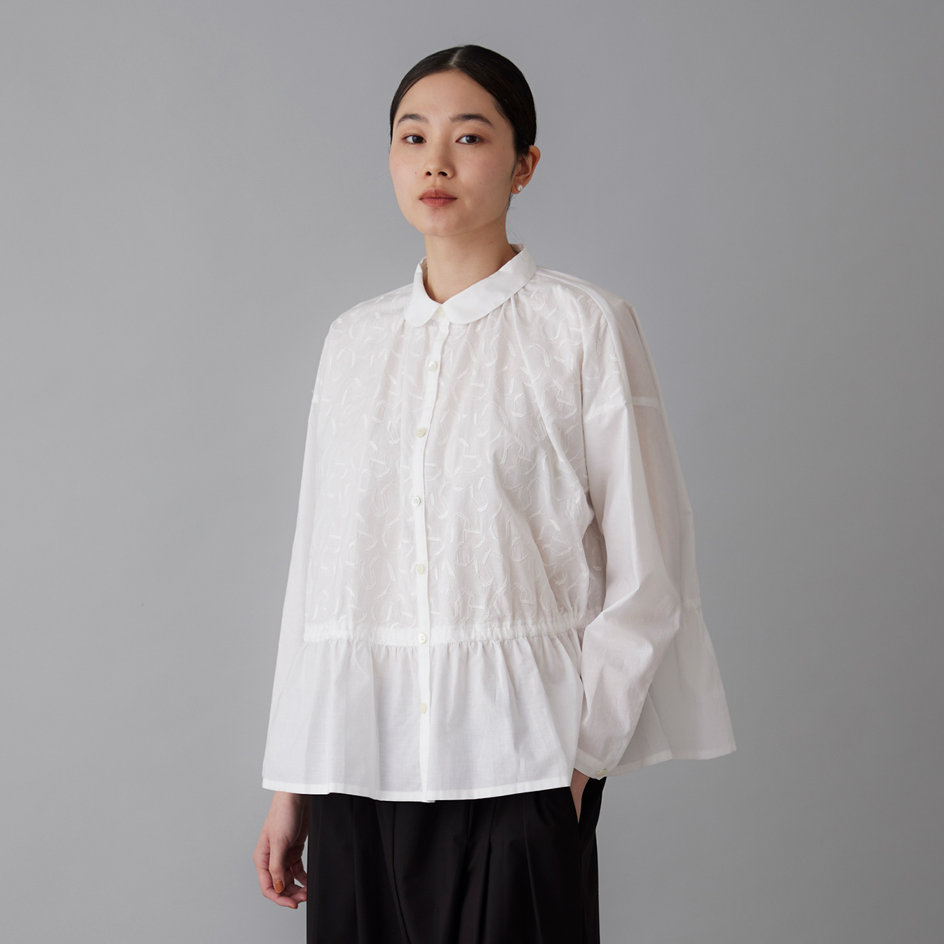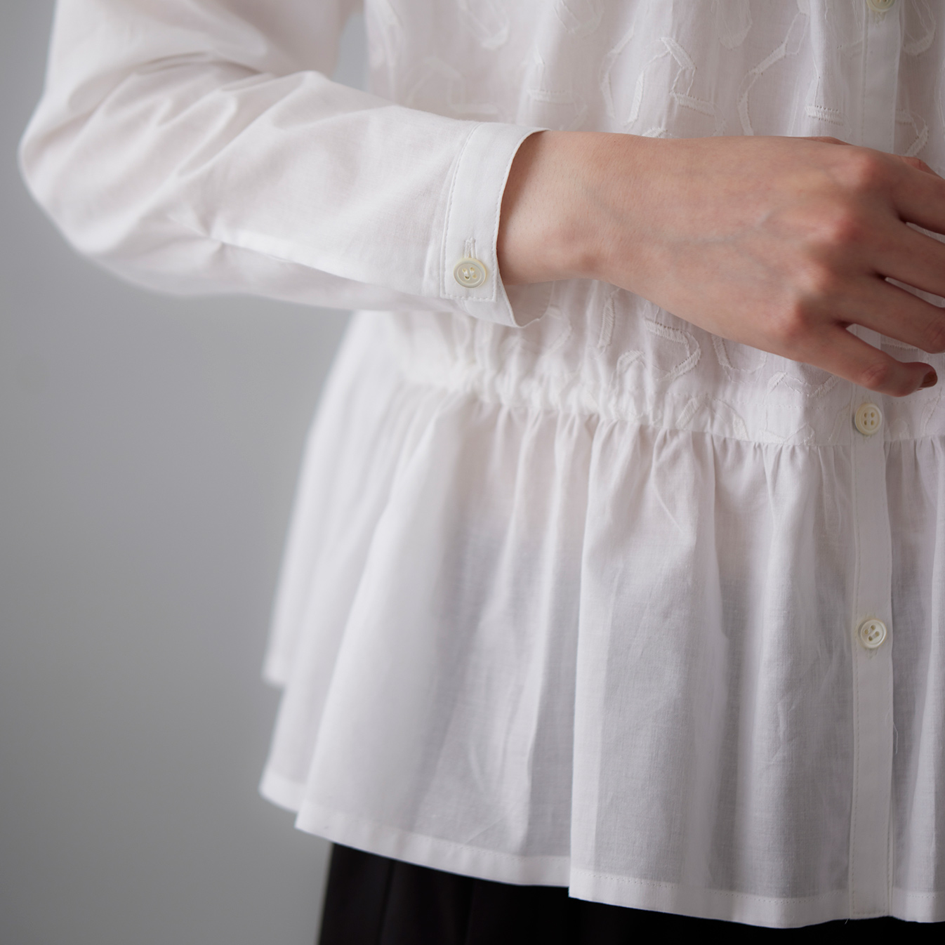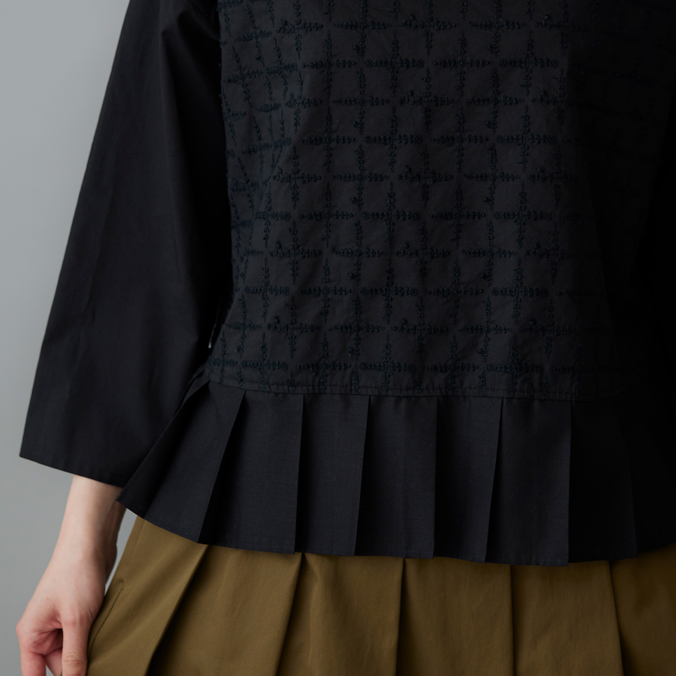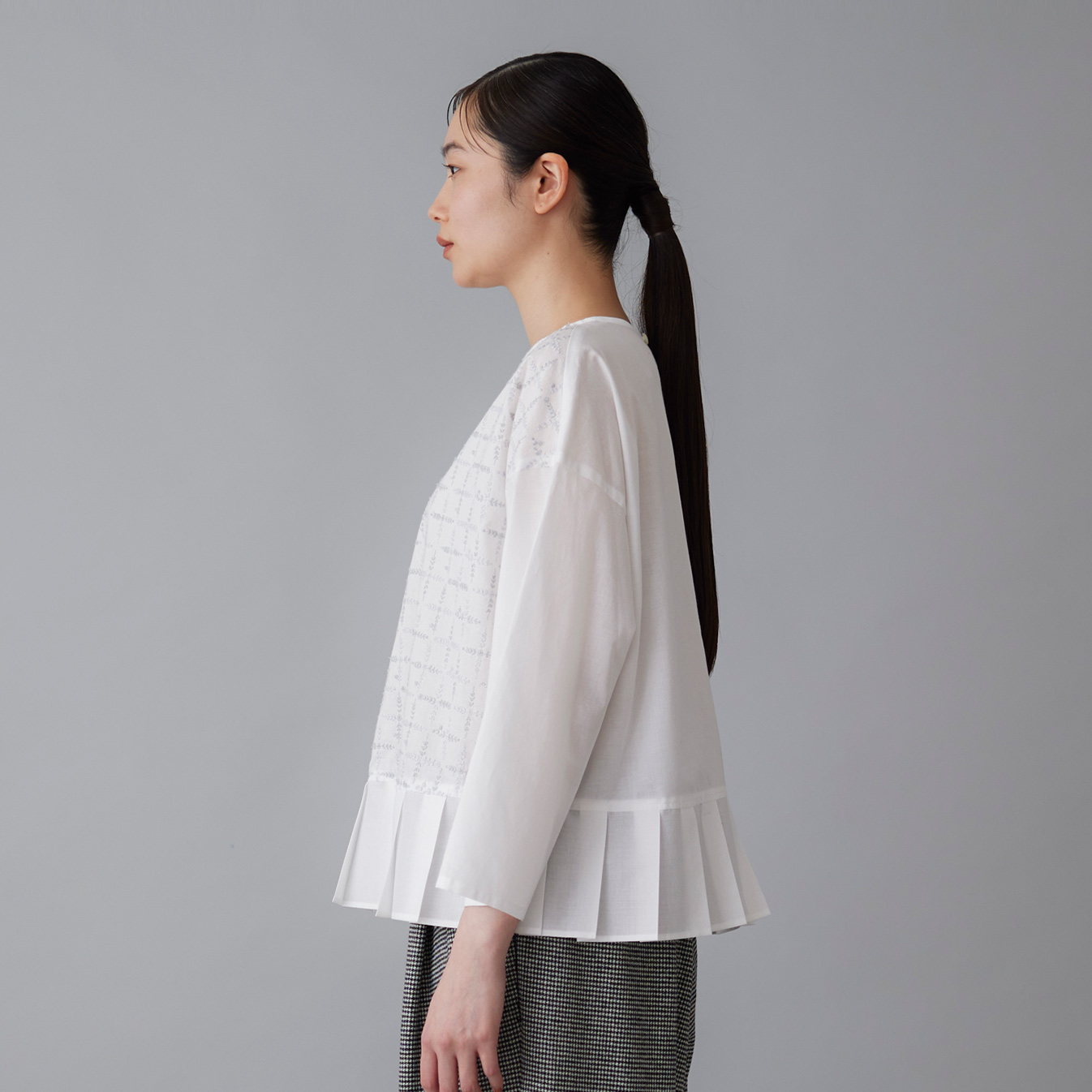 「Puutarha」の繊細な刺繍とプリーツの組み合わせが印象的なブラウス。