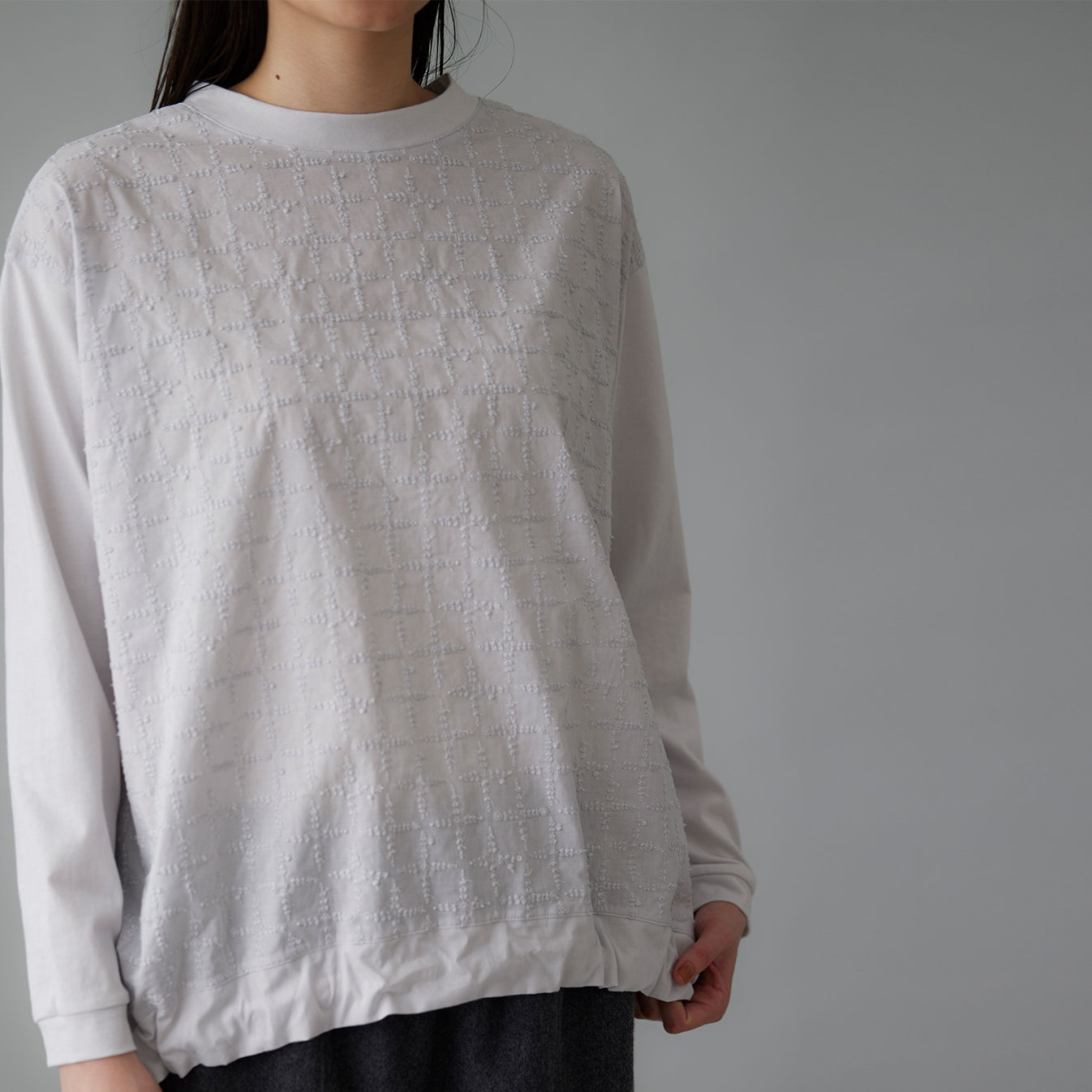 やさしい透け感を持つ薄手のコットンローンに、それぞれ繊細な刺繍をのせて仕上げています。