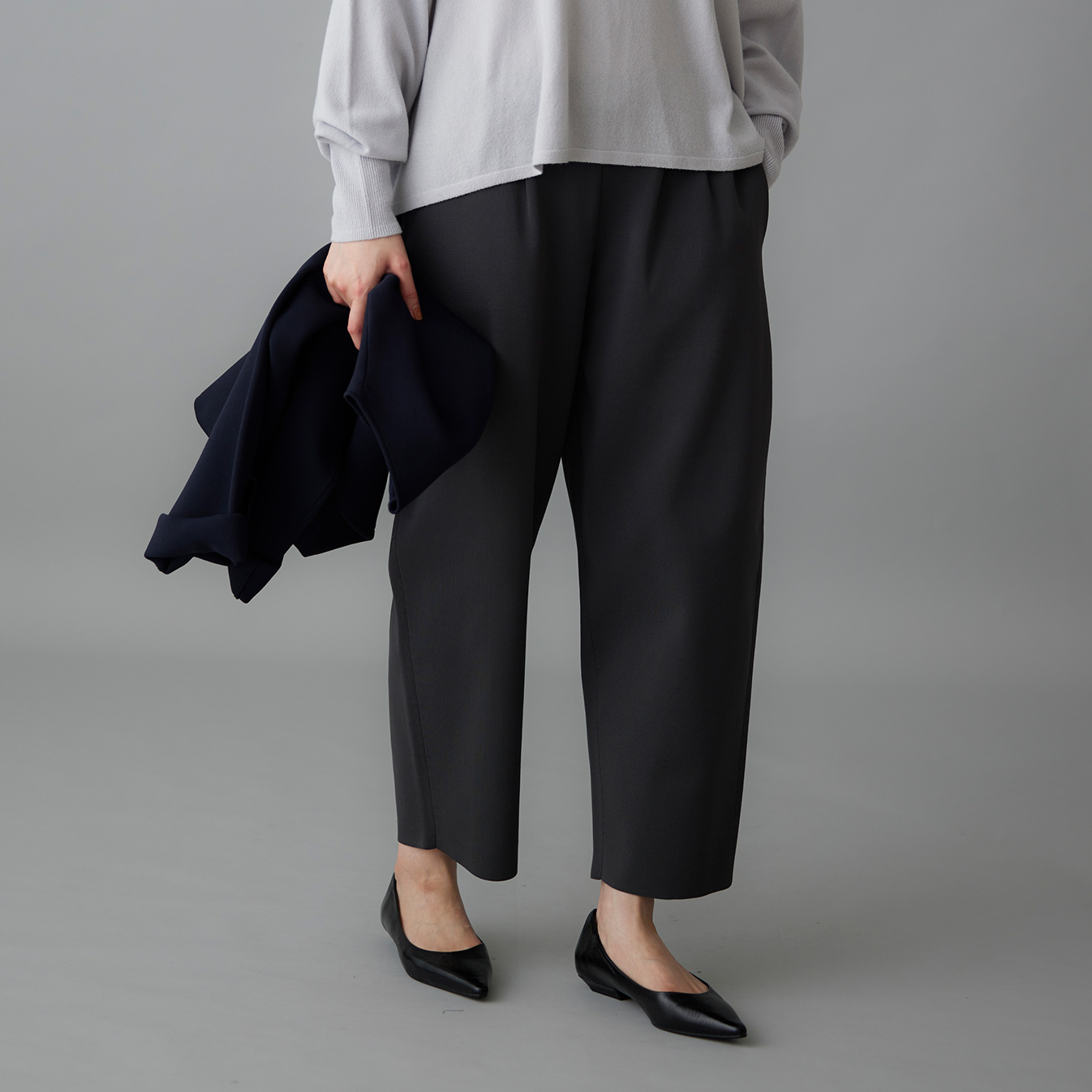 ほどよい厚みがありながらも、軽やかな穿き心地で、長時間着てもストレスを感じにくいのが魅力です。