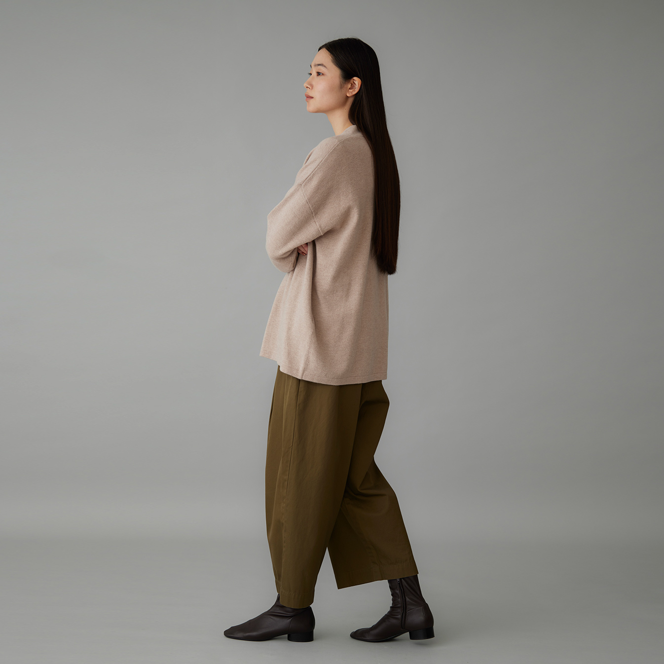 同素材のパンツやカーディガンと合わせて、上質なリラックススタイルを。