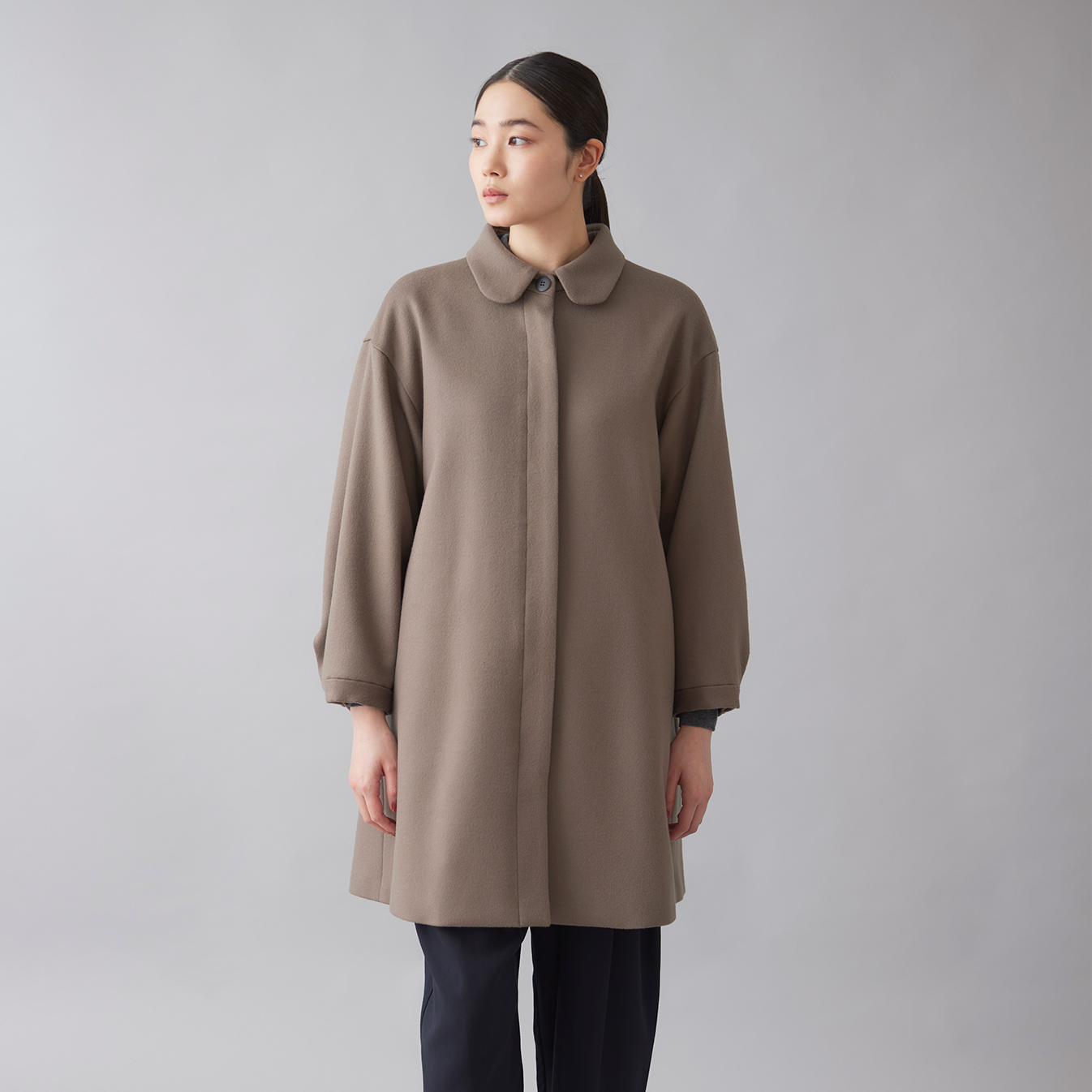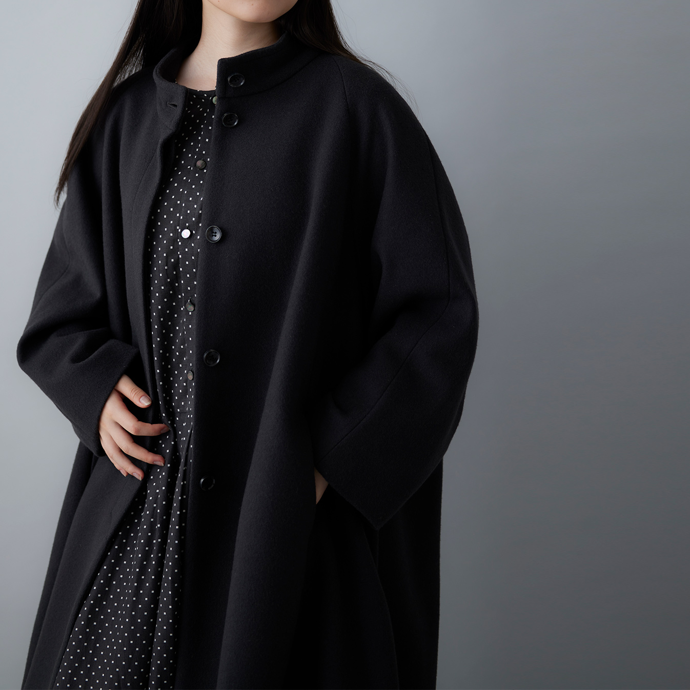 ほどよい厚みと柔らかく滑らかな肌触りのアウターが、冬の日常に品を添えます。