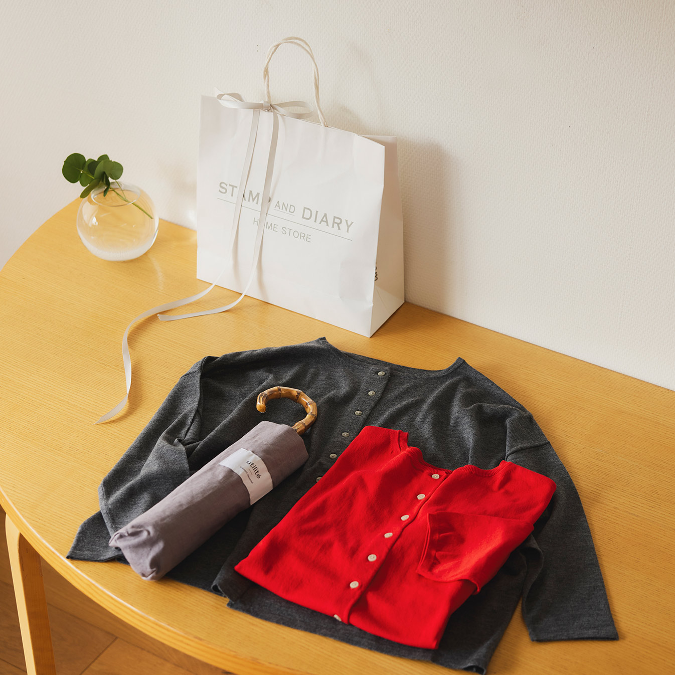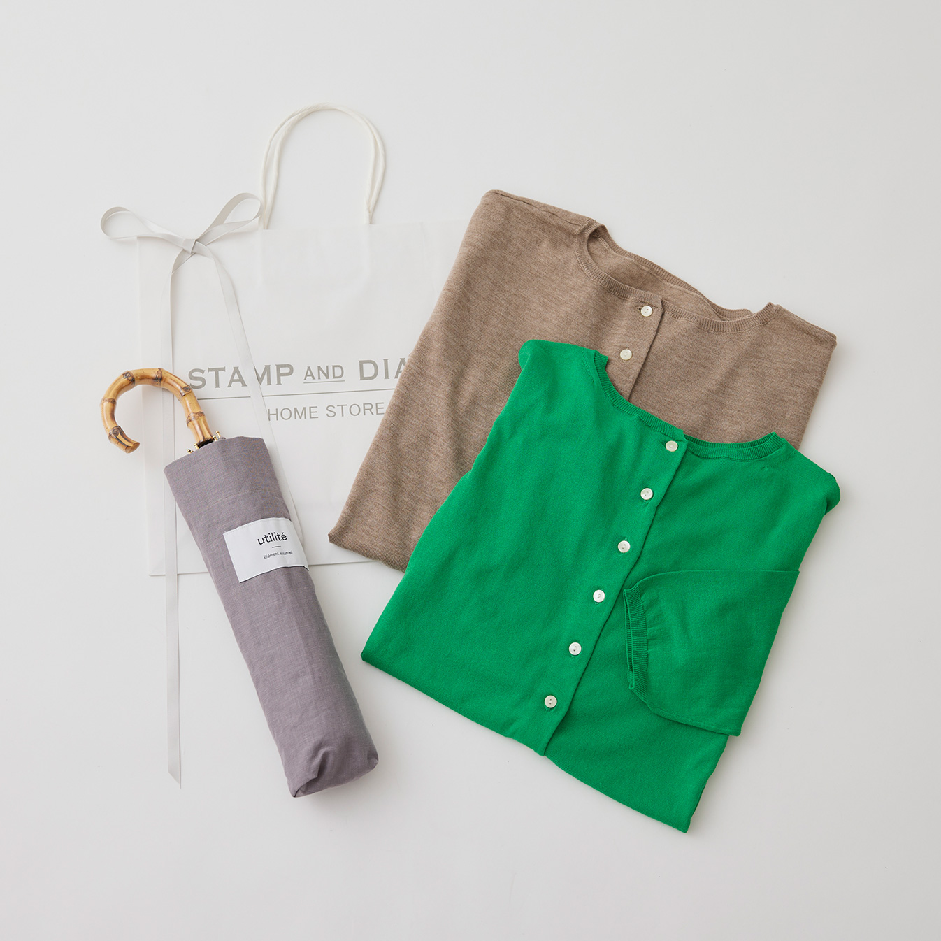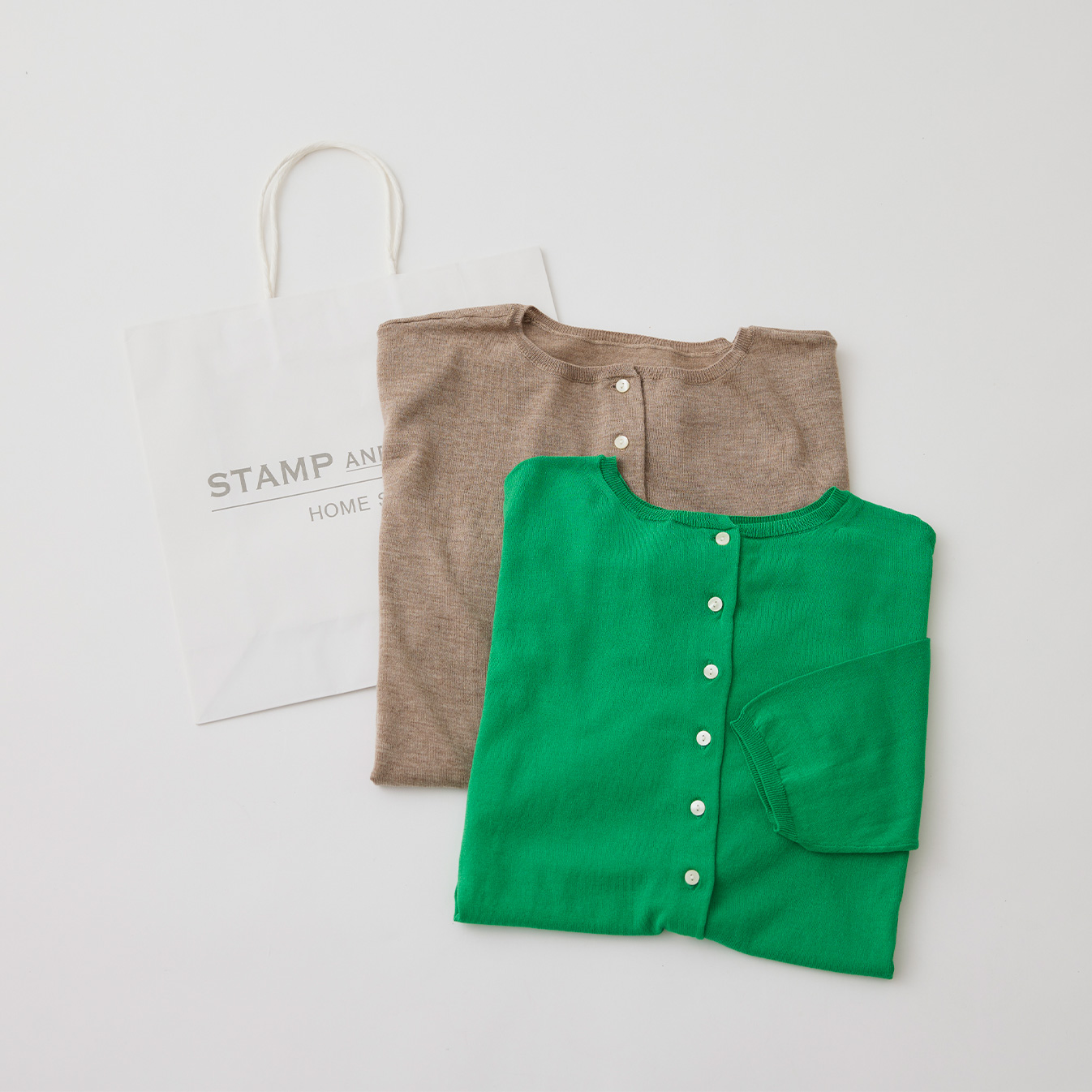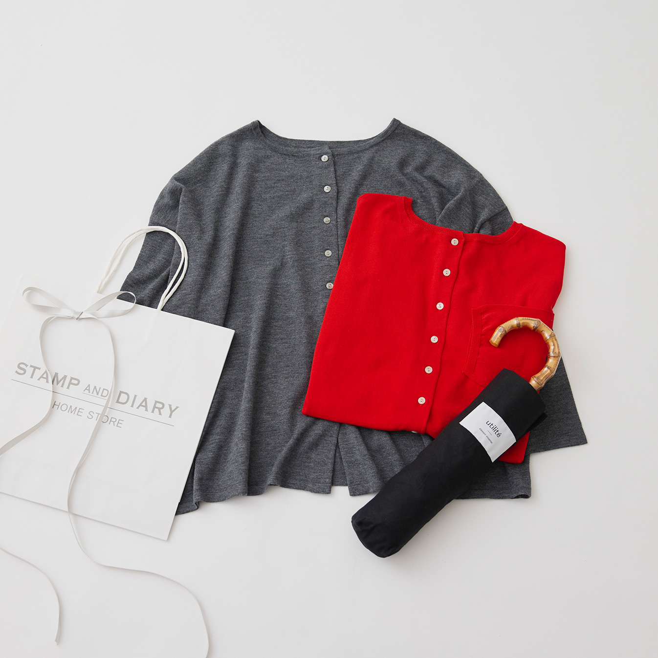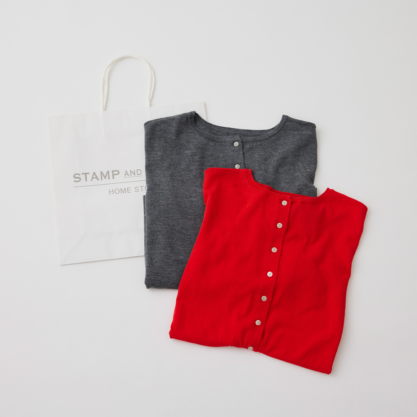 どちらのHAPPY BAGにも、STAMP AND DIARYのアイコンアイテム「2wayワイドカーディガン」を必ずお入れします。