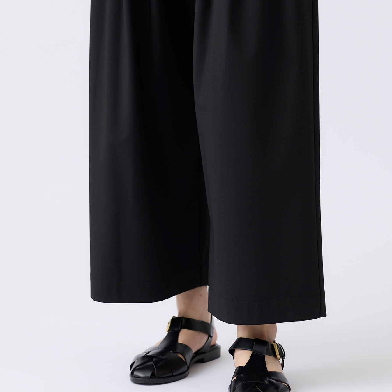 動くたびにしなやかに揺れるシルエットが美しい、ウエストタックワイドパンツ。